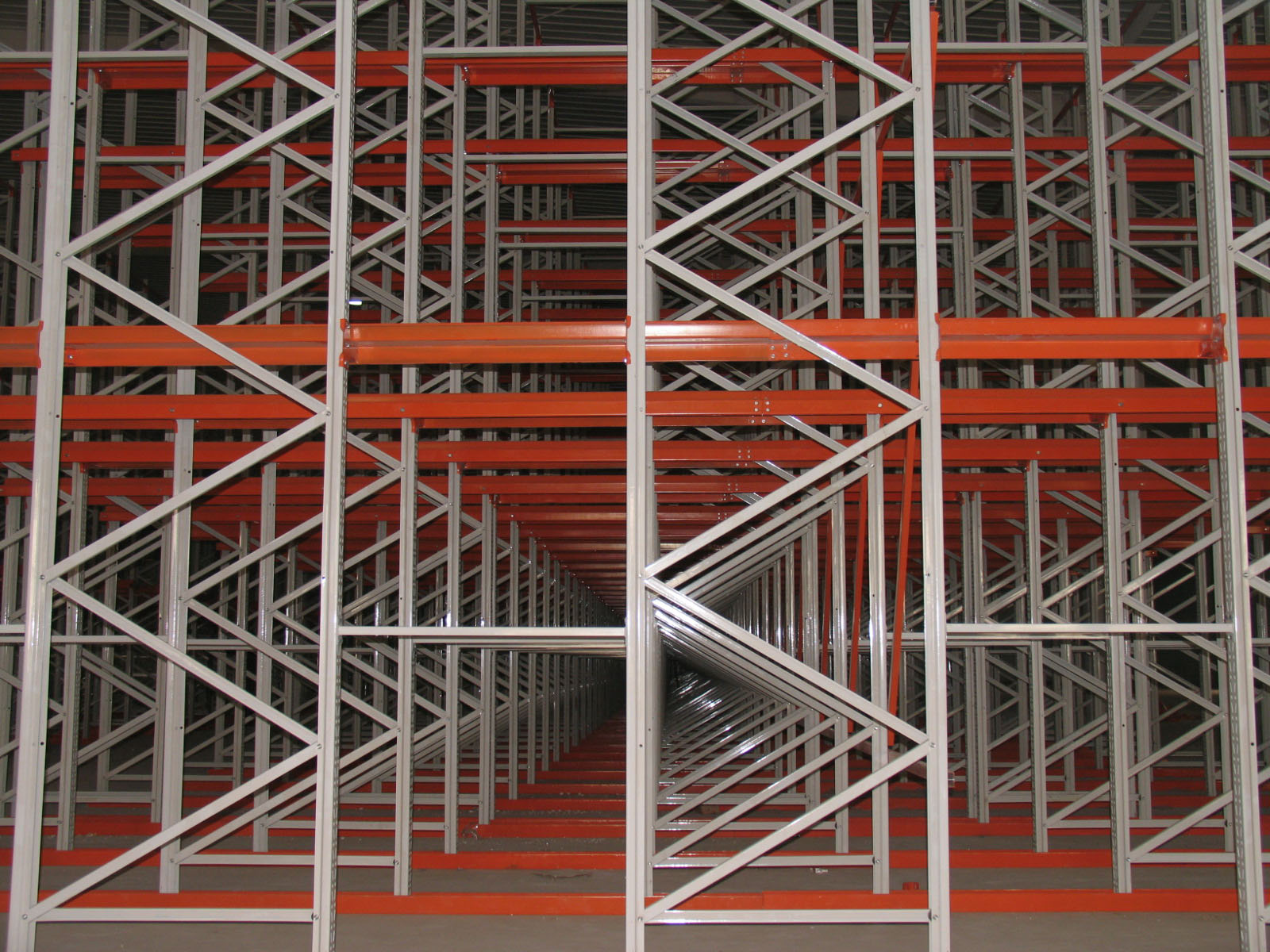 重型橫梁式貨架是目前使用較為廣泛的貨架類型,具有較強(qiáng)的通用性,可適應(yīng)各種類型的貨物,可按貨物尺寸要求調(diào)解橫梁高度。重型橫梁式貨架主要由立柱、橫梁、橫撐、斜撐以及自鎖螺栓組裝而成。橫梁與立柱的連接多采用機(jī)械式的鎖扣結(jié)構(gòu),可隨意拆裝組合。橫梁采用特制的冷軋P型閉口梁;該結(jié)構(gòu)具有簡(jiǎn)單可靠、重量輕、承載力強(qiáng)、造價(jià)低的特點(diǎn);柱卡與立柱連接時(shí)配有特殊設(shè)計(jì)安全銷,可以確保橫梁在外力撞擊下不會(huì)脫落。可根據(jù)存儲(chǔ)單元集裝設(shè)備的特性加裝如:隔檔、鋼層板(木層板)、金屬絲網(wǎng)層、倉儲(chǔ)籠導(dǎo)軌、油桶架等功能性附件。根據(jù)用戶實(shí)際使用情況:托盤載重要求、托盤尺寸、倉庫實(shí)際空間、叉車實(shí)際提升高度,可提供不同規(guī)格的橫梁式重型貨架以供客戶選擇。