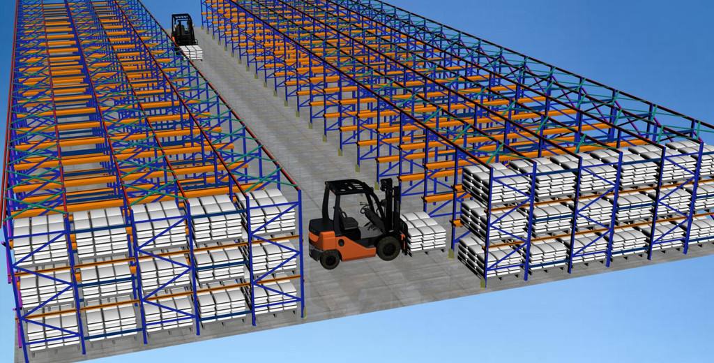 5、貫通式貨架系統的穩定性是所有種類貨架中較為薄弱的,為此貨架不宜過高,一般在10m以內,另外系統中還需加設拉固裝置。此種系統貨架排布密集,空間利用率極高,適于儲存少品種大批量同類型貨物,貨物可從同一側存入取出,也可從一側存入另一側取出。