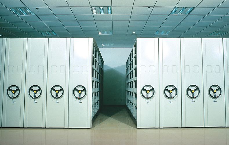 我公司移動密集柜有多種款式,每個款式均可選擇對開門、通門、移門等不同外觀要求。產(chǎn)品廣泛適用于企業(yè)事業(yè)單位的圖書館、檔案館、資料室等對圖書、文件檔案資料、物品的存放。貨架體之間的接觸面配有緩沖和磁性密封條,頂部有防塵板、選裝射燈、底部有防鼠裝置。沒列架體設(shè)有安全限位及防傾倒裝置。邊架裝有鎖具,用于整體鎖閉。傳動機構(gòu)通過精加工處理,使用精密軸承,傳動靈活平穩(wěn),層板增距根據(jù)需要可自由調(diào)節(jié)。